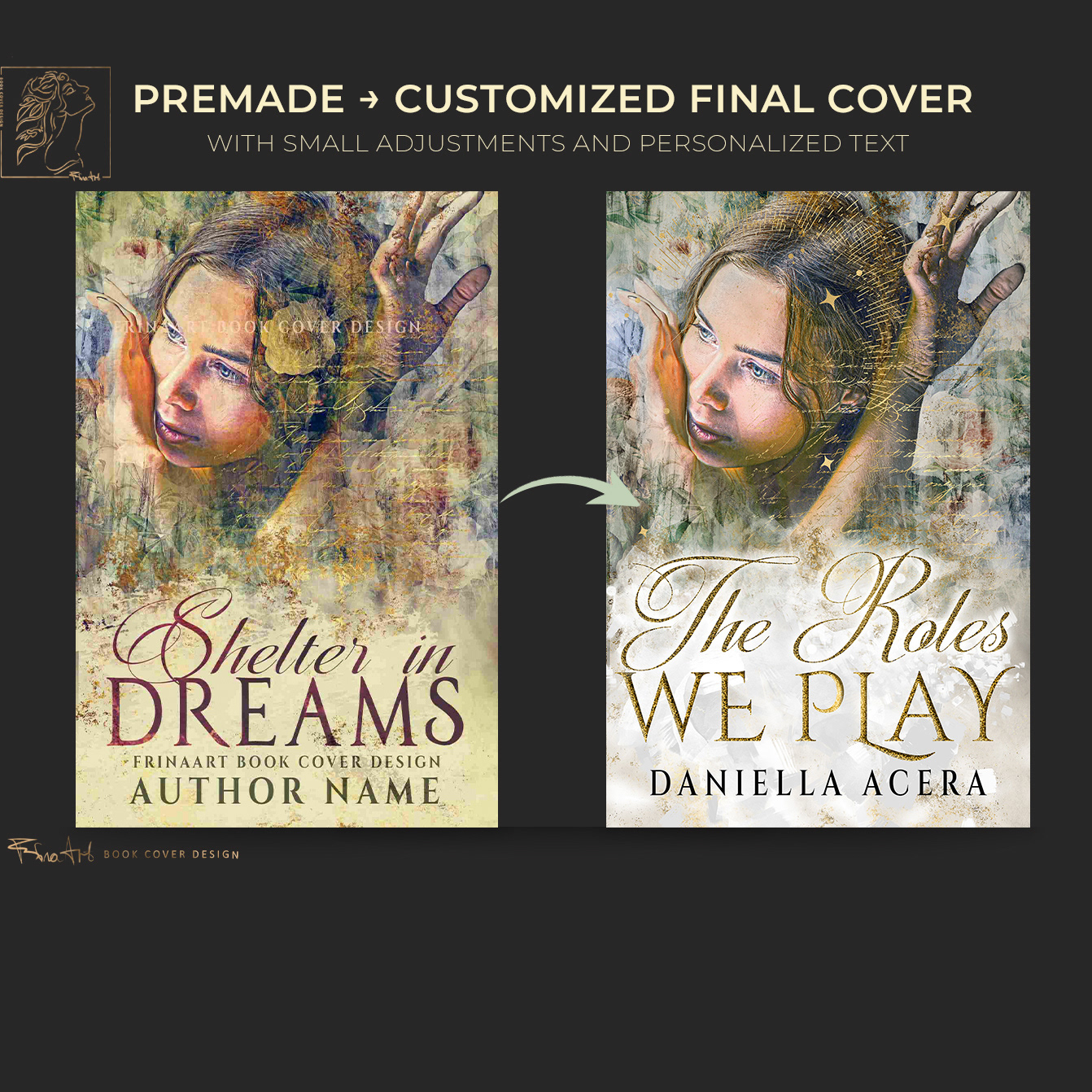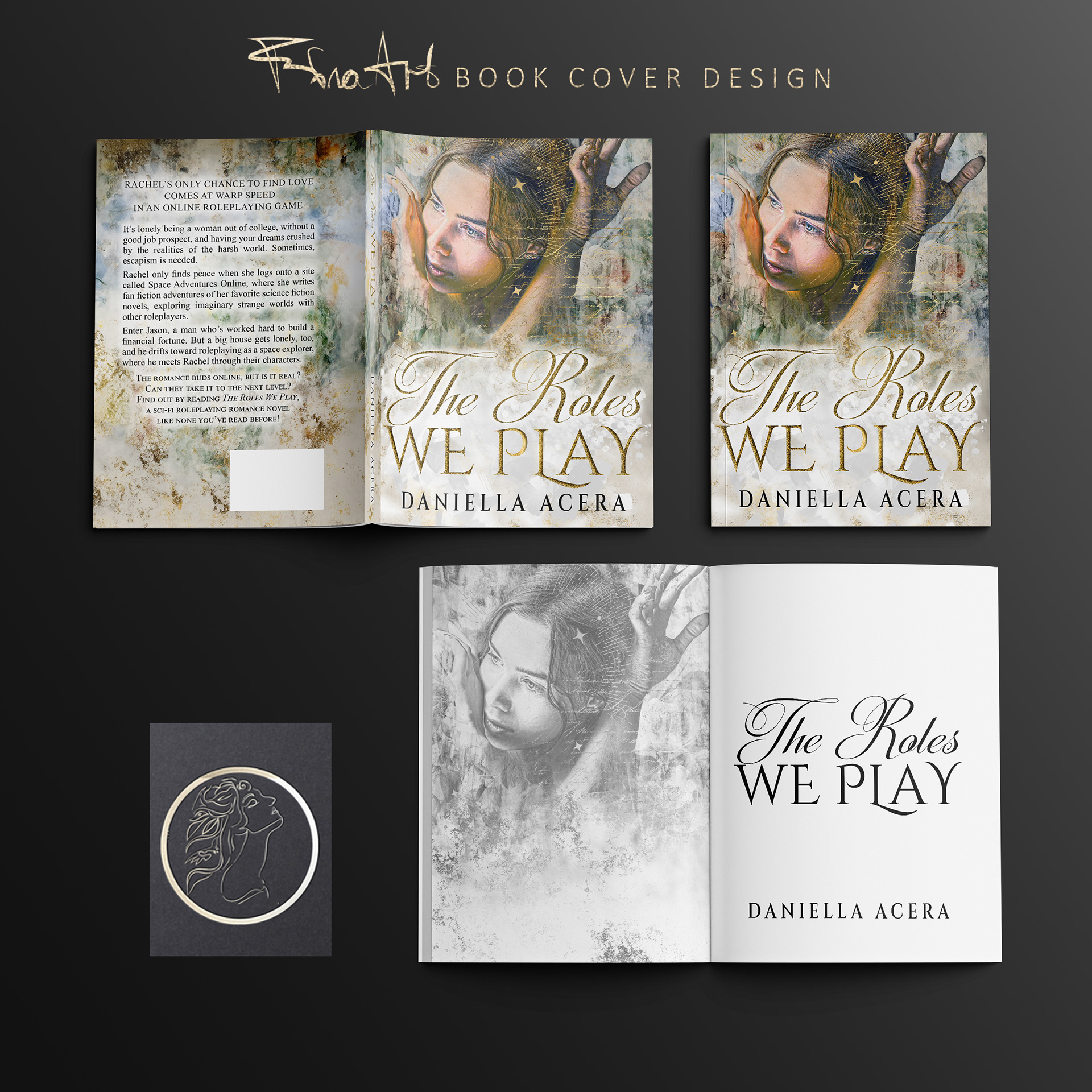 “The Roles We Play” blends romance and science fiction, following a connection born inside an online role‑playing world. The goal of the cover was to visualize this emotional and digital dynamic. My task was to transform an existing premade concept into a fully customized design that reflects the atmosphere, themes, and genre identity of the novel.